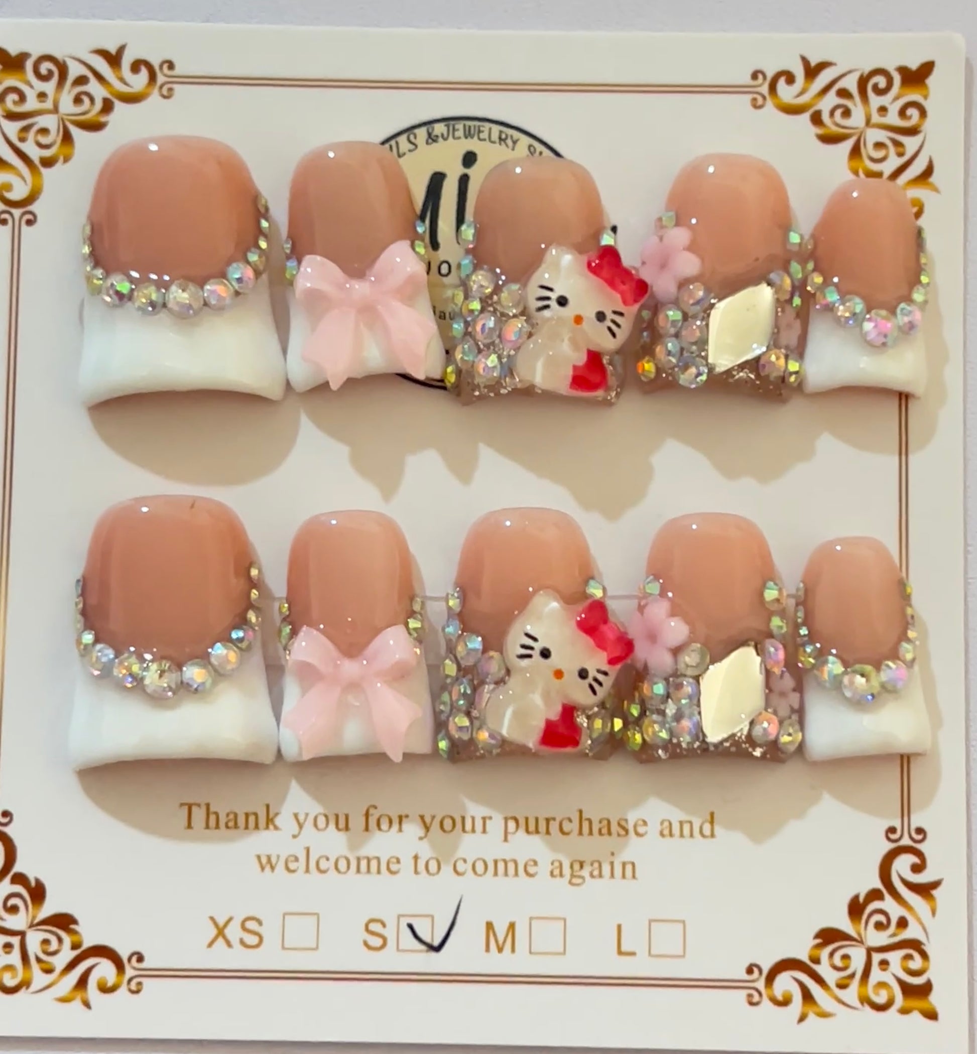 Each set is handcrafted with meticulous attention to detail. Lasts up to 2 weeks with simple application. Includes 10 press-on nails in assorted sizes, adhesive tabs, nail glue, cuticle stick, mini file, and alcohol pad.