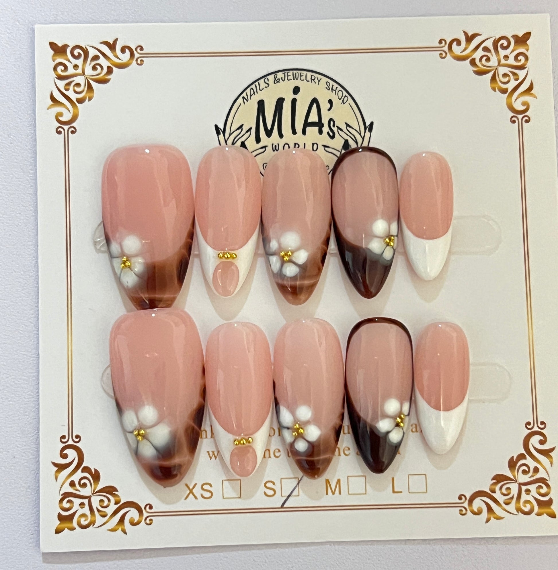 Each set is handcrafted with meticulous attention to detail. Lasts up to 2 weeks with simple application. Includes 10 press-on nails in assorted sizes, adhesive tabs, nail glue, cuticle stick, mini file, and alcohol pad.