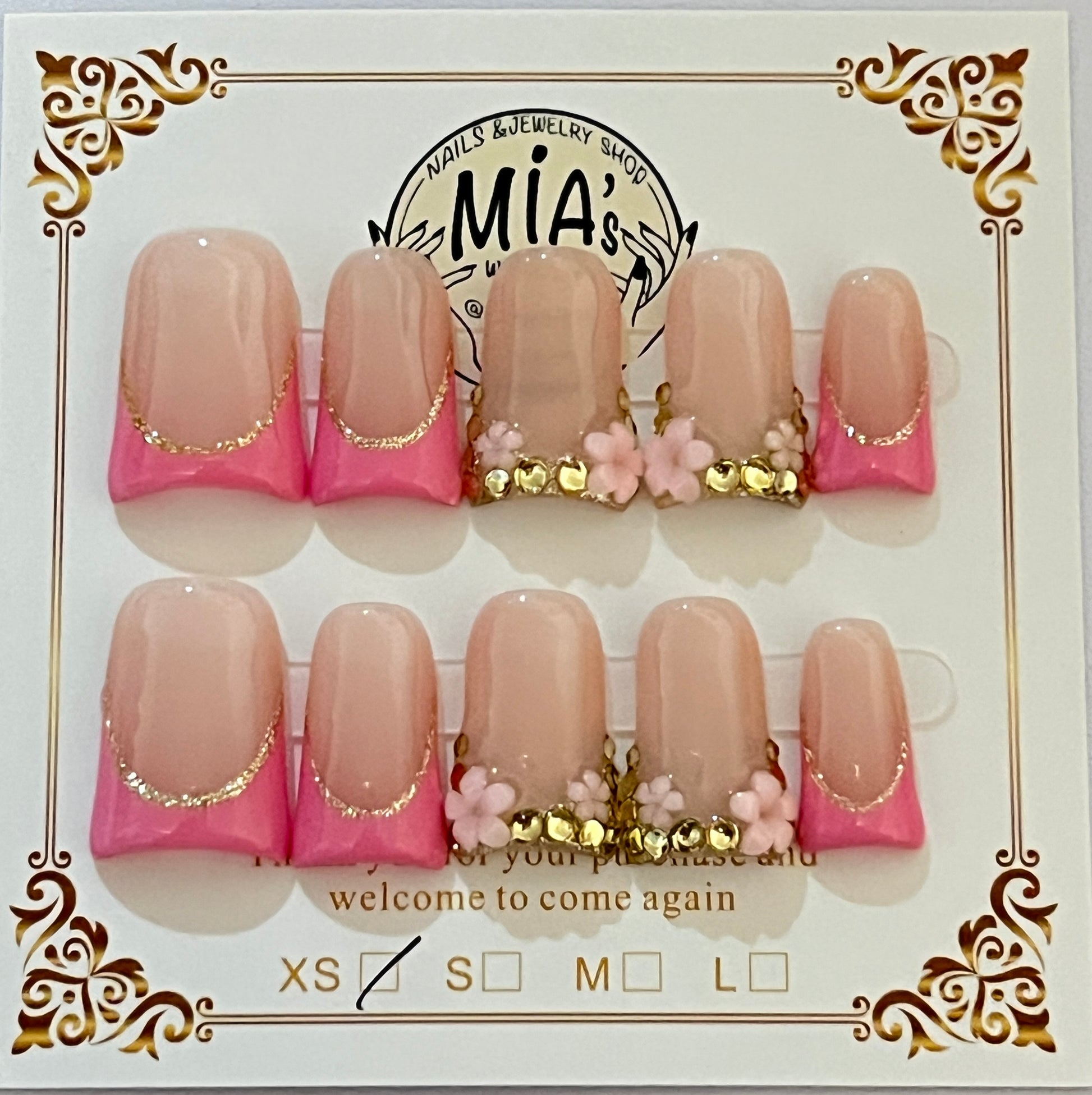 Each set is handcrafted with meticulous attention to detail. Lasts up to 2 weeks with simple application. Includes 10 press-on nails in assorted sizes, adhesive tabs, nail glue, cuticle stick, mini file, and alcohol pad.