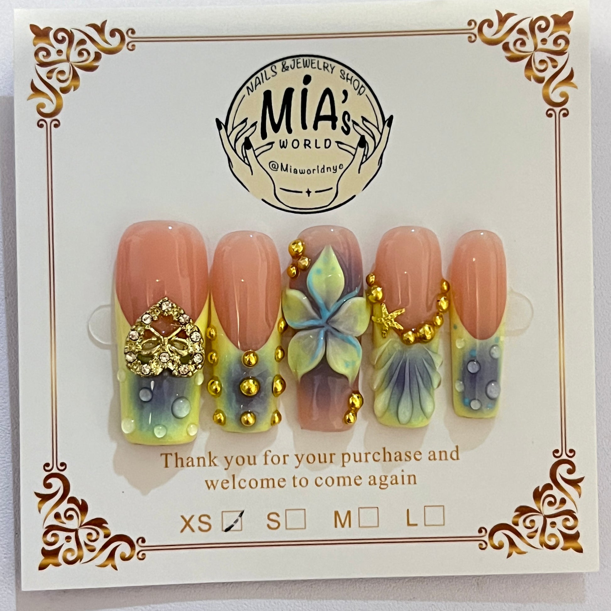 Each set is handcrafted with meticulous attention to detail. Lasts up to 2 weeks with simple application. Includes 10 press-on nails in assorted sizes, adhesive tabs, nail glue, cuticle stick, mini file, and alcohol pad.